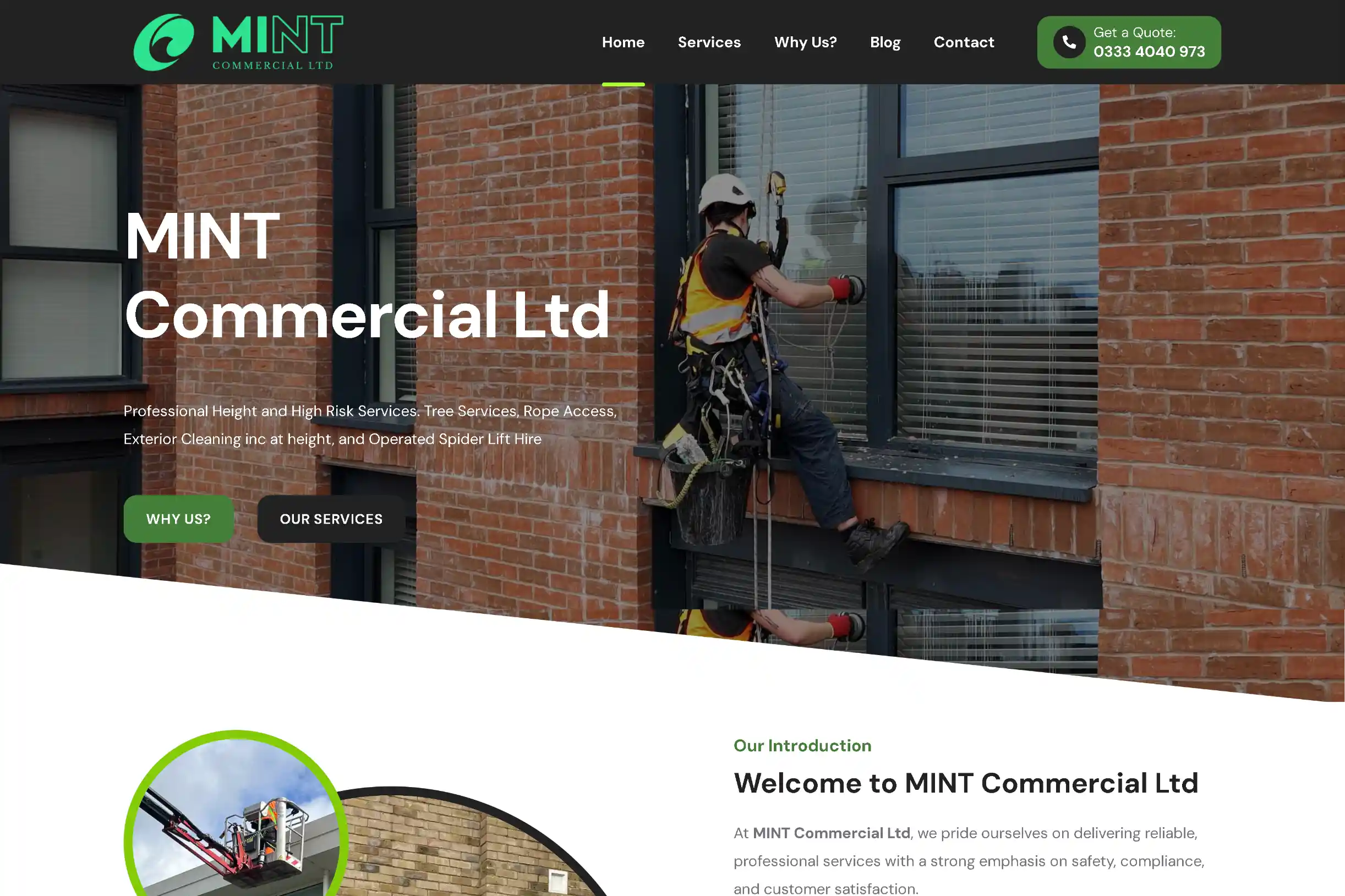 MINT Commercial Ltd is a trusted provider of professional tree surgery, exterior cleaning, and operated spider lift hire services. With a strong commitment to safety, compliance, and customer satisfaction, the company delivers high-quality solutions tailored to both commercial and residential clients. Backed by years of industry experience, MINT Commercial Ltd ensures every project is handled with precision, using advanced equipment and eco-friendly practices to minimize environmental impact. Their expertise extends across various sectors, making them a reliable choice for clients seeking efficient, safe, and professional high-access services.